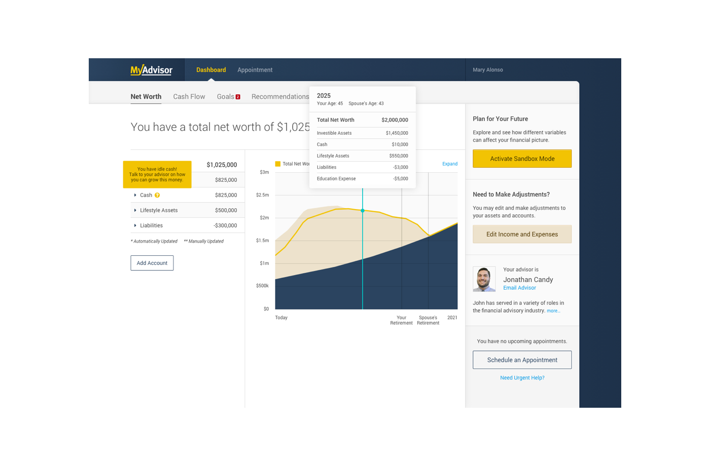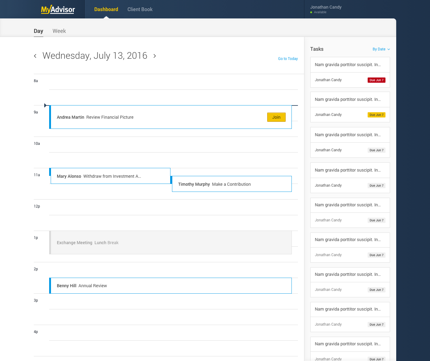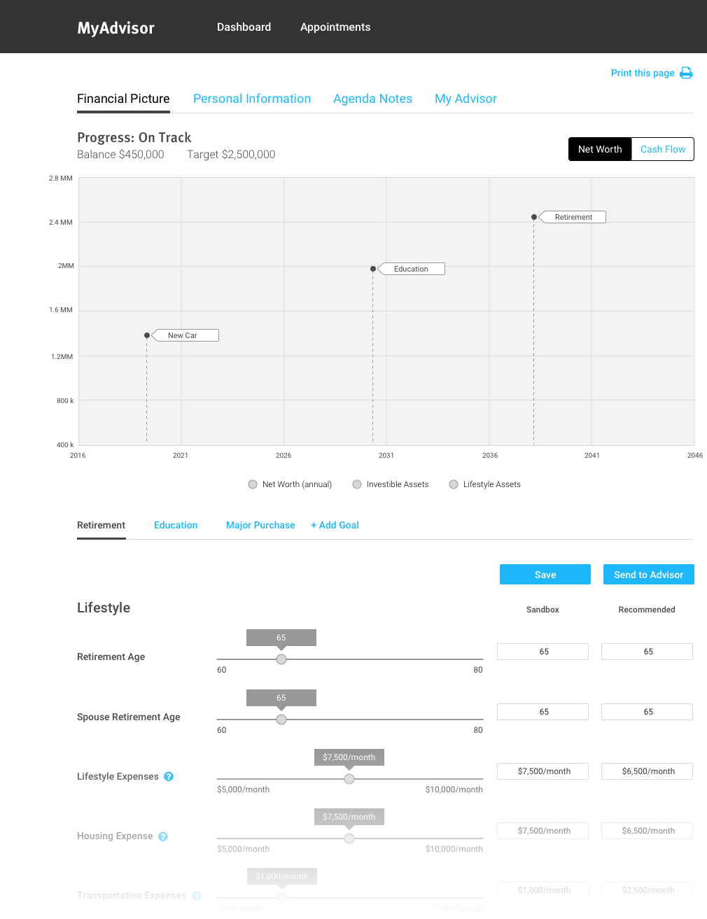 A client-facing dashboard and an internal advisor dashboard were created as part of the MyAdvisor product.