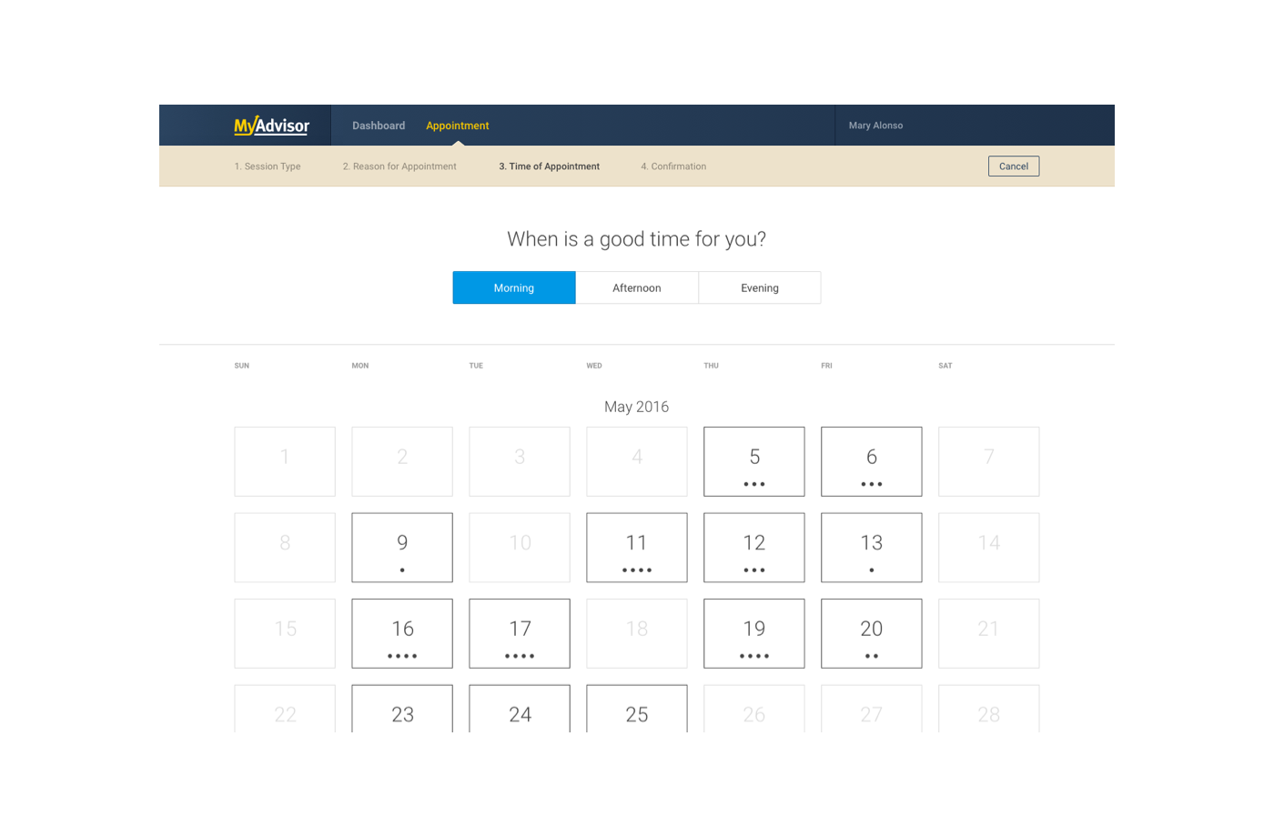 One portion of the Advisor user flow
