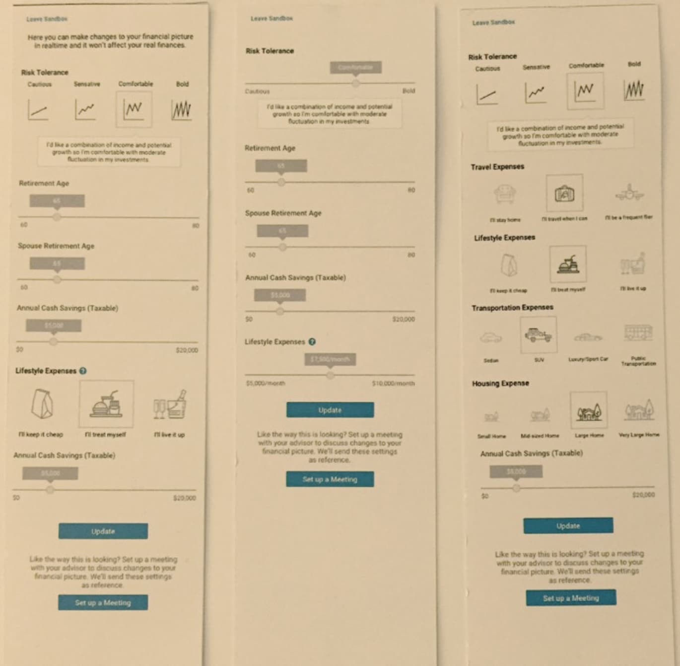 As with any product creation, UX is always one of the first steps. During the first couple months, my team focused primarily on mapping out different solutions on how MyAdvisor would work and tested every detail along the way. In the end I believe we created a pretty compelling product idea that took financial planning (on a website) to the next level.