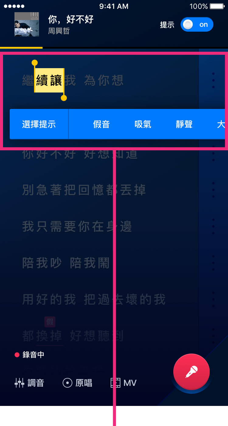 Similar to how professional musicians annotate their sheet music to remind themselves of potential pitfalls, users in Supernova can annotate their lyrics and personalize every song to match their singing style.